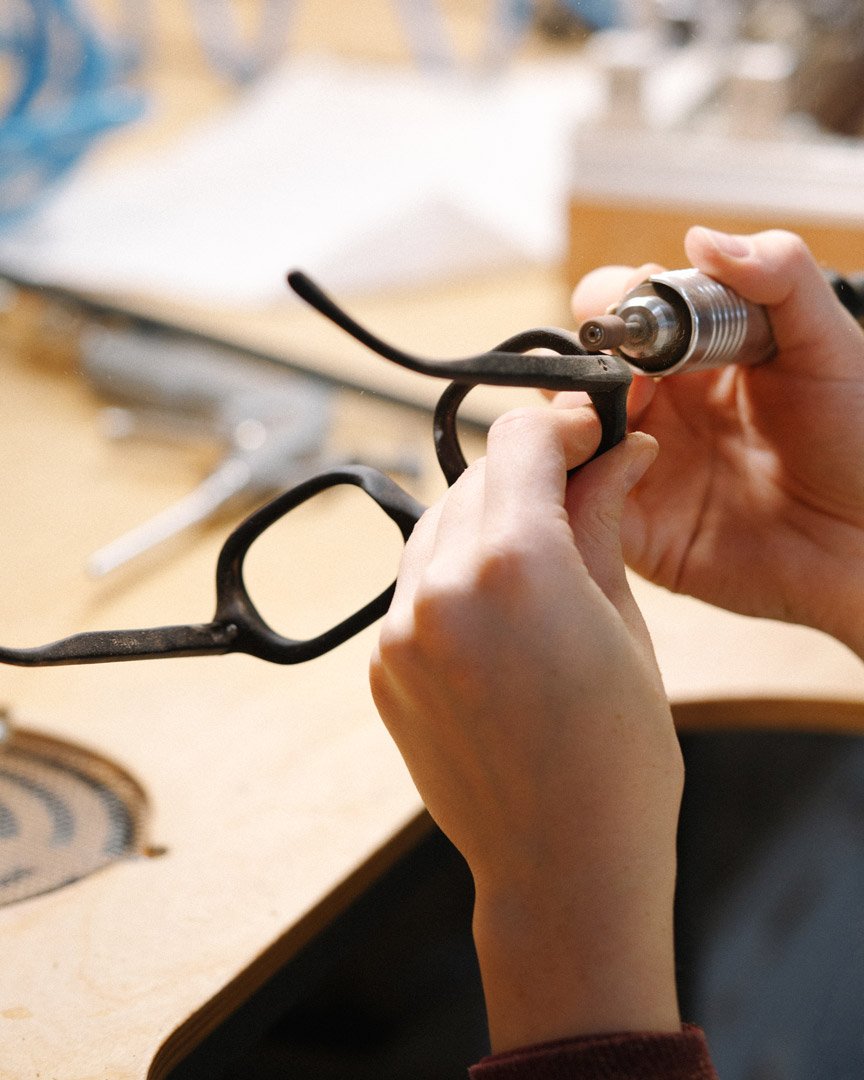 Ми пресуємо матеріал у пластини та за допомогою лазера вирізаємо з них оправи.